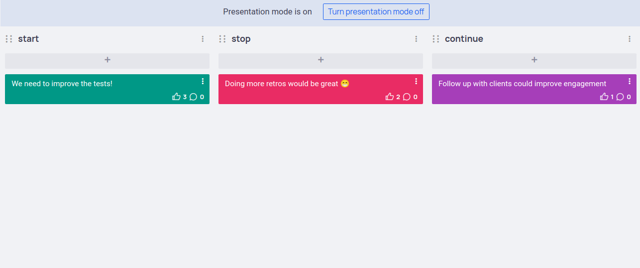 When you clone the content of a board, you will now have the added benefit of cloning its surveys as well. This improvement makes it much easier to kick-start your next retro without having to recreate the surveys from scratch.