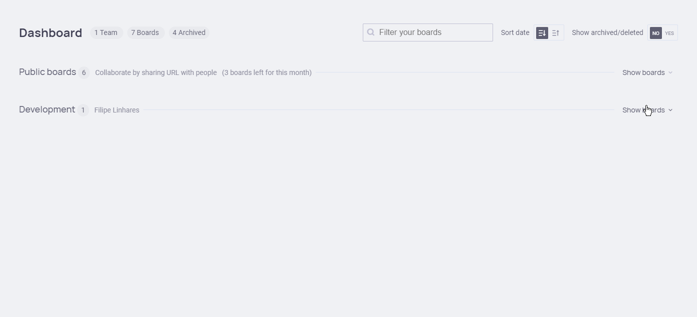 To ensure good performance, we added an option to show and hide board sections in your Dashboard. This also helps you navigate between teams if you are a heavy user.