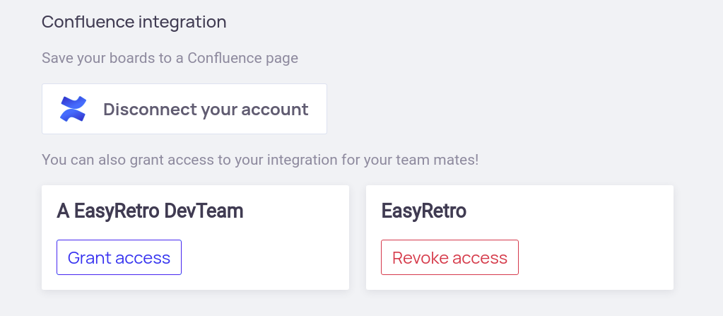 If you need your team members and admins to export retro boards to Confluence by themselves, you just need to grant access to your integration!